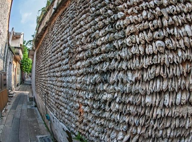 其次是独特的蚝壳屋。蚝壳屋延续了岭南地区传统的民俗。在古时候,当地居民就已学会就地取材,采用蚝壳建造房屋,用来充作砖瓦,既省钱又质量好。在外面观看,蚝壳整齐地排列着,非常有美感,在其他地方可是不会有的哦。用手触摸蚝壳的棱角,还能感受到不一样的质感,是沙湾古镇的一大特色。