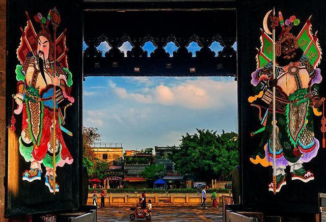 最值得一去的地方当然非留耕堂莫属啦。作为沙湾古镇最有代表性的地方,留耕堂早已扬名天下。留耕堂占地面积不是很大,从正面看可以看见三座建筑。两侧稍微低矮的小屋各开了一笑座拱门,中间的主建筑大门上有两位门神,威武无比。