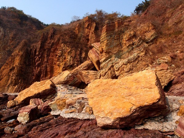 海蚀地貌,颜色很炫丽的,照片不太能看出来,实际更漂亮。