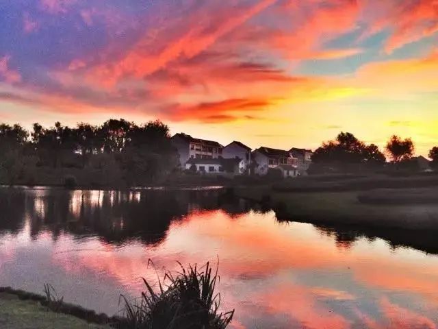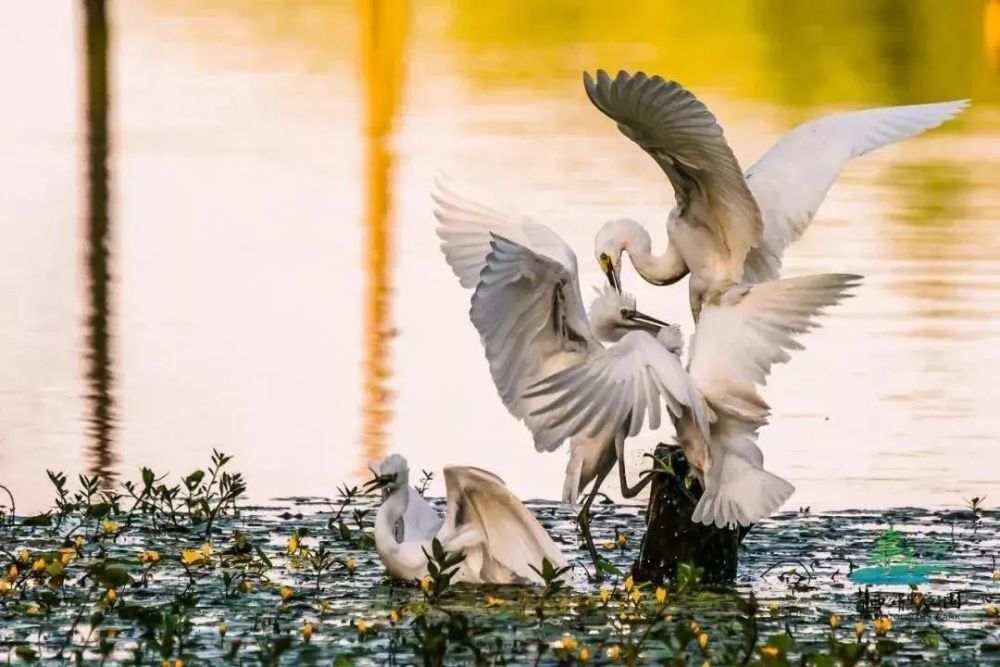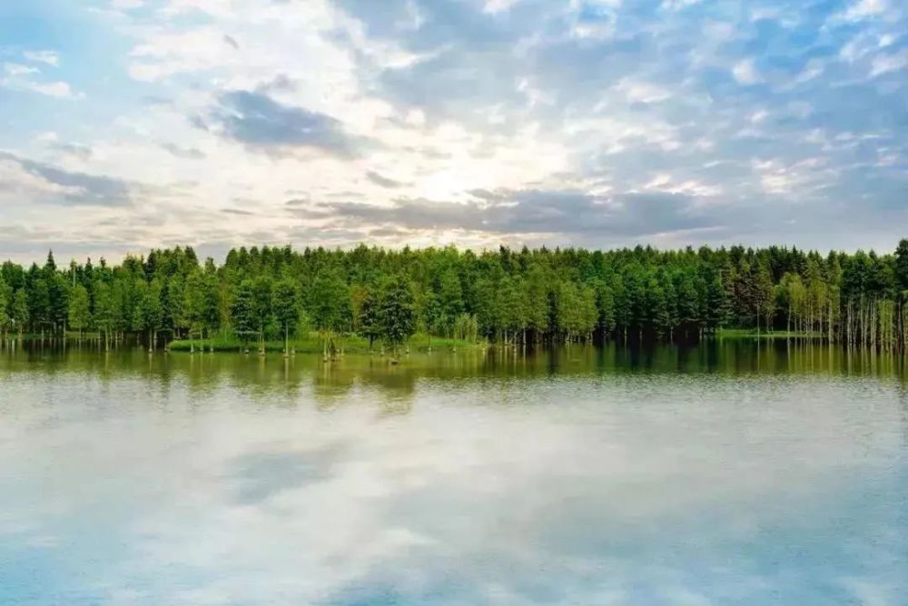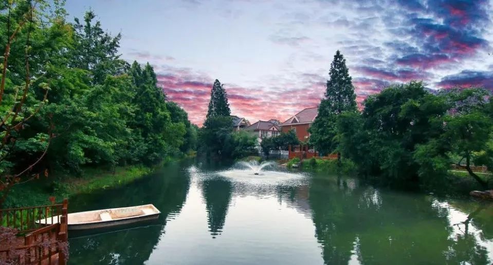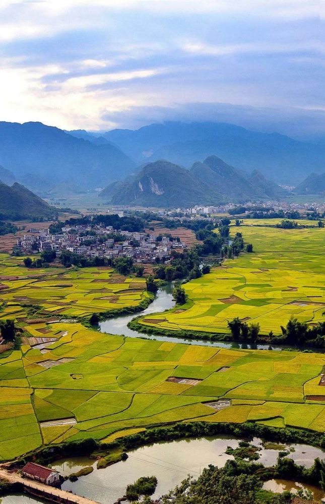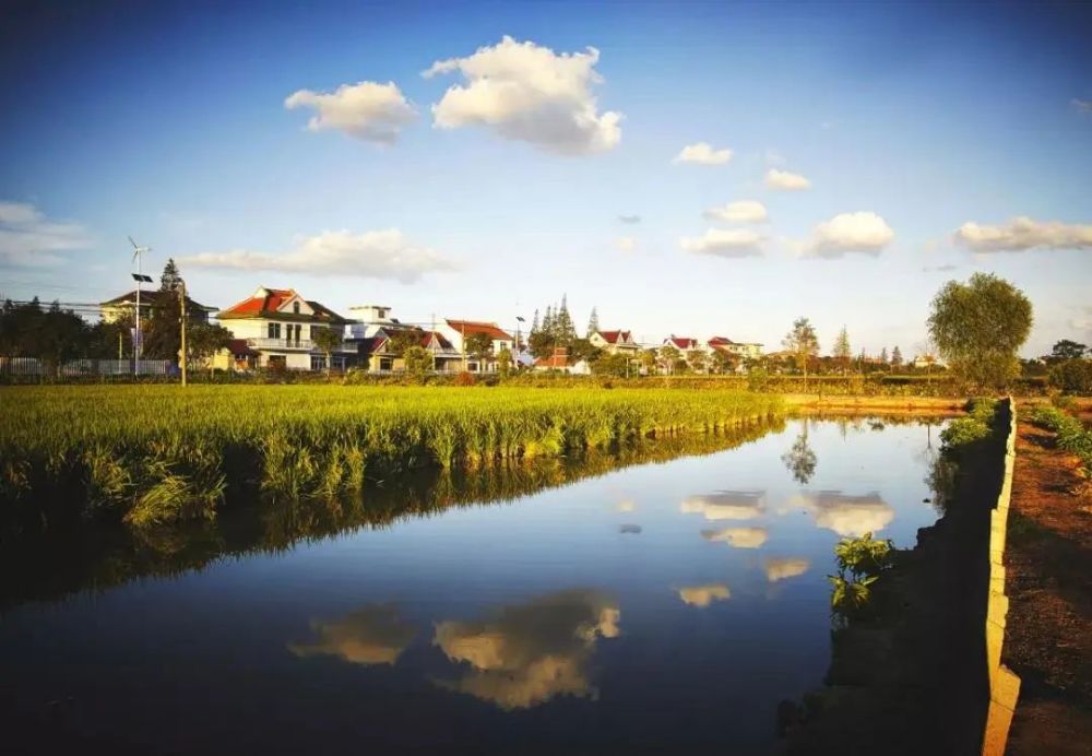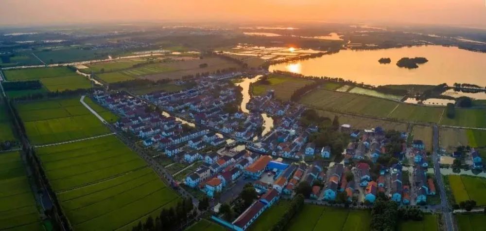 散落的在平地的村舍,一片片湿地,一亩亩稻田,俨然是一座水上乐园,绿树与白墙黛瓦相映,美得像是泼墨山水画。