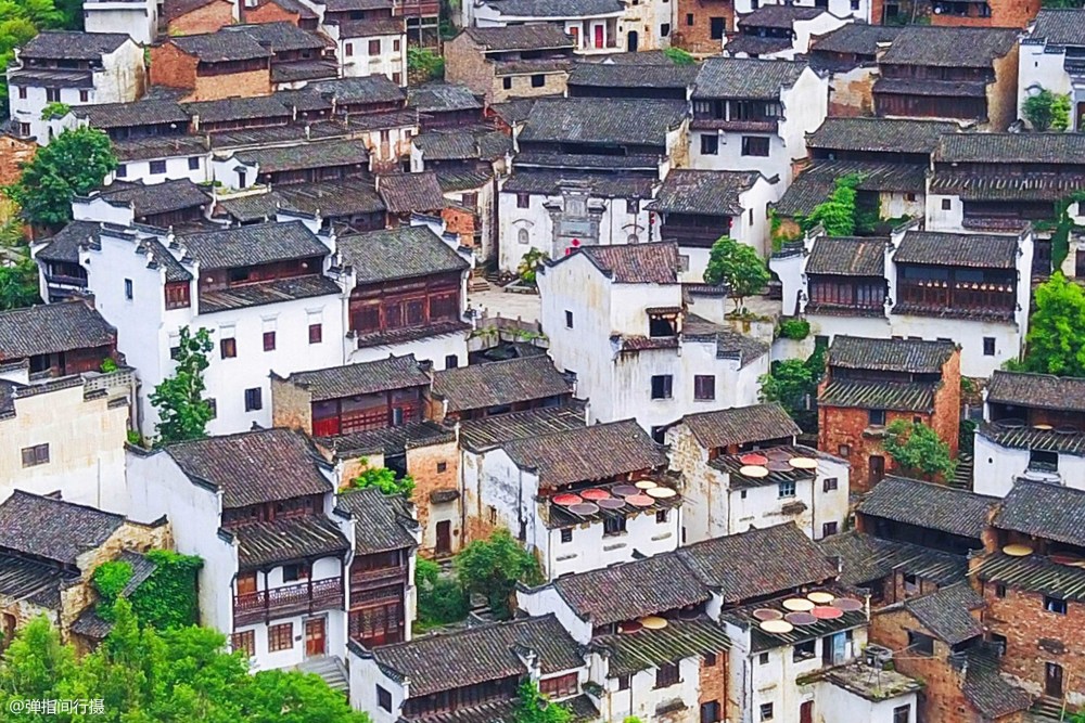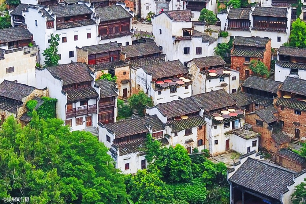 整个篁岭村依山而建,地势崎岖,“地无三尺平”,但当地人并未被自然条件和独特地貌所限,他们把自己居所错落有致地建在山上,数百栋徽派古民居,排列整齐,上下落差超过百米,这也造就了篁岭村世外桃源般的田园隐居生活。