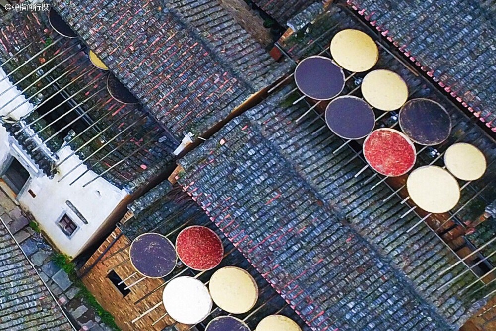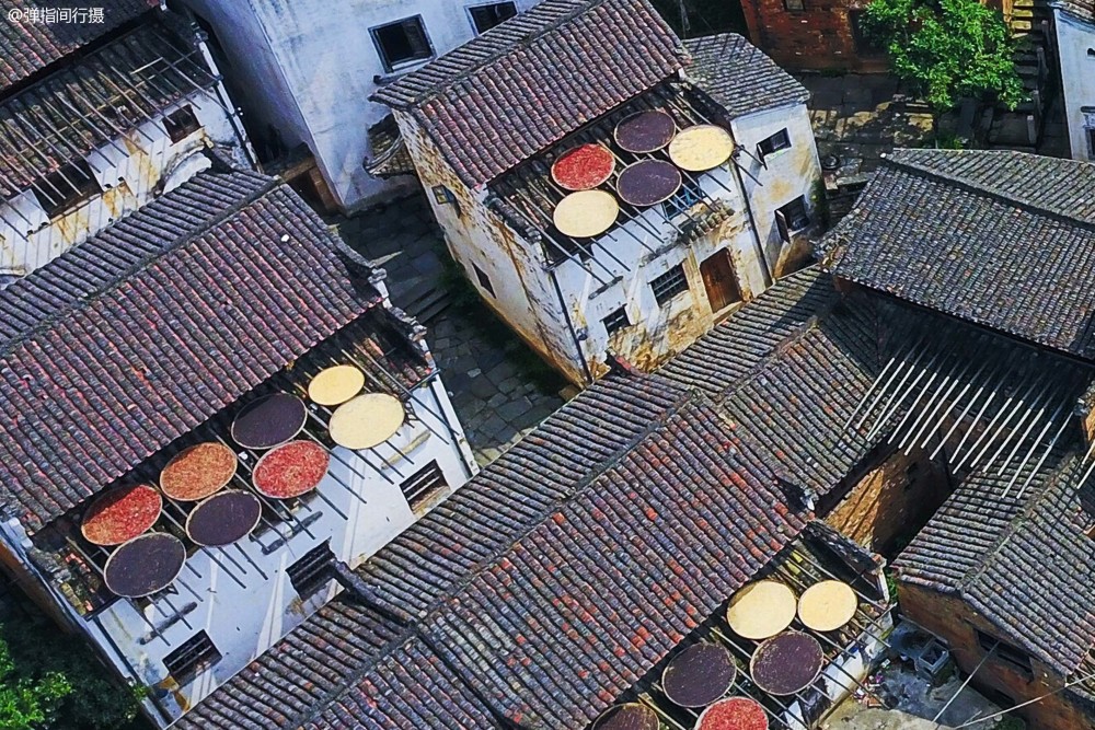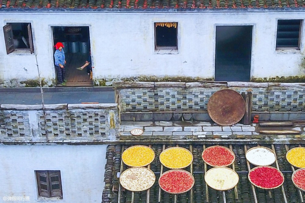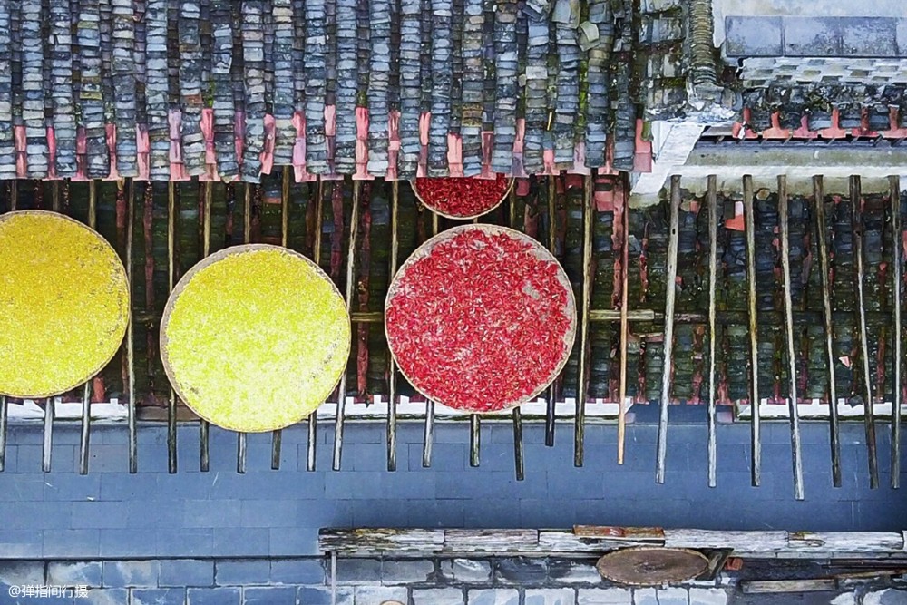 其实,世界独一无二的“晒秋” 农俗,并不局限于秋天,人们把各个不同季节收获的食材放在大簸箕放在上面晾晒,春晒水笋、夏晒山珍、秋晒果蔬、冬晒乡俗,不同的时节,不同的色彩,景观各异,精妙绝伦。