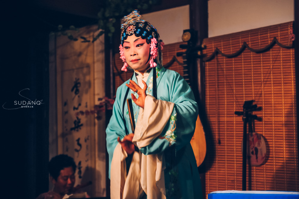 她的目光偶尔从我眼前扫落,但她的声色一直沉醉在那段故事里。 边上还有一位老先生,正拉着曲,伴着她的声色,悠扬婉转,台下的人听得专注。